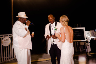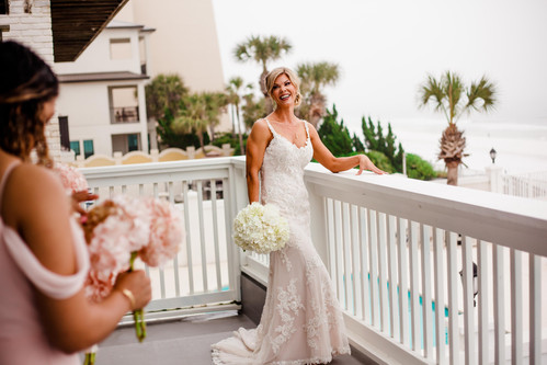 They got ready at a beautiful private beach house right on the Gulf with Madison with Crystal Beach Events there to make sure everything looked beautiful and ran smoothly. Jack with Jack Line Media was there too, capturing beautiful video footage from start to finish, and Cartoons with Deano was there drawing amazing caricatures of all the guests!