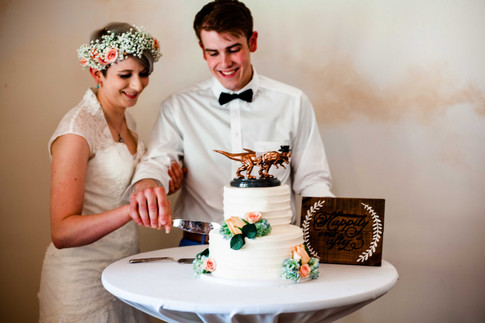 The day was full of laughter and special touches, including the DIY T-Rex cake toppers (made by the bride herself) that went perfectly with the gorgeous, rustic-chic cake by Sally's Piece-A-Cake. We also had a great time almost throwing Logan in the lake (not as much fun for him tho) and jamming to the Game of Thrones theme song with violinist Christina Mei-Ling Smith.