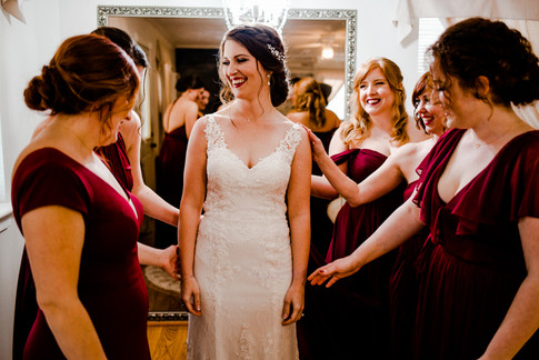 Bliss Bridal had the PERFECT dress for Jamie, and she looked absolutely exquisite. The delicate lace and beading was so sweet, and the fitted bodice and low backline were so flattering. It could not have been a better fit for her. Combine the perfect dress with Jillian Holt as MUA, who is an expert at bringing out a girl's natural beauty, plus hair by the talented stylists at Lavender, and you've got bridal perfection.